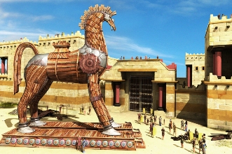 El caballo de Troya fue un artilugio con forma de enorme caballo de madera que se menciona en la historia de la guerra de Troya y que según este relato fue usado por los griegos como una estrategia para introducirse en la ciudad fortificada deTroya. Tomado por los troyanos como un signo de su victoria, el caballo fue llevado dentro de los gigantescos muros, sin saber que en su interior se ocultaban varios soldados enemigos. Durante la noche, los guerreros salieron del caballo, mataron a los centinelas y abrieron las puertas de la ciudad para permitir la entrada del ejército griego, lo que provocó la caída definitiva de Troya.