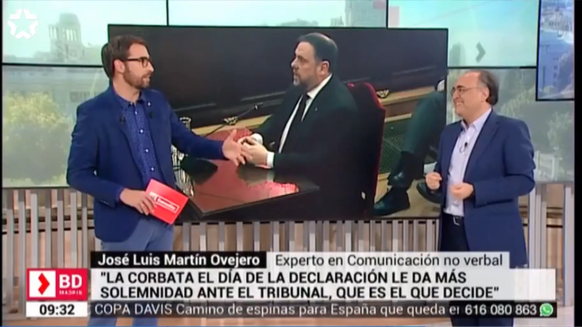 Oriol Junqueras: su comunicación no verbal durante el juicio (Telemadrid – Buenos Días Madrid) 16 febrero, 2019 José Luis Martín Ovejero Destacados, Expresión facial, Gestualidad, Háptica (el tacto), Varios Deja un comentario Análisis de la declaración de Oriol Junqueras en el juicio: Análisis Oriol Comparte esto: Haz clic para enviar un enlace por correo electrónico a un amigo (Se abre en una ventana nueva) Correo electrónico Haz clic para imprimir (Se abre en una ventana nueva) Imprimir Tweet Haz clic para compartir en WhatsApp (Se abre en una ventana nueva) WhatsApp MásMe gusta Cargando...