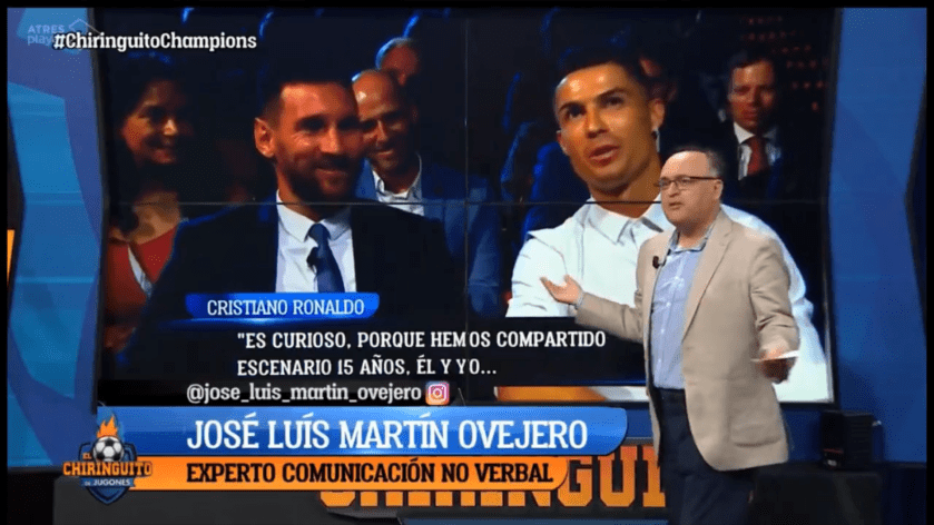 Tres importantes momentos de Leo Messi / Ronaldo analizados desde la perspectiva no verbal para el programa deportivo «El Chiringuito de Jugones» – Canal MEGA: