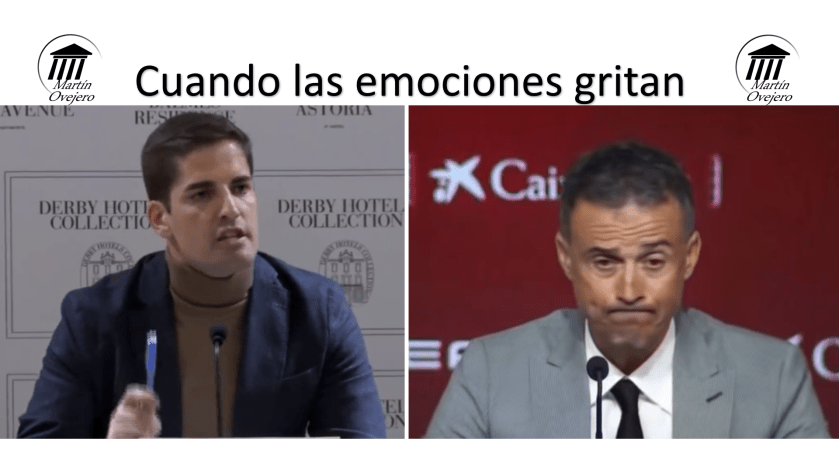 - Parece existir una microexpresión de desprecio al referirse a lo sucedido con Luis Enrique en el día anterior. No olvidemos que ello exterioriza sensación íntima de superioridad hacia personas o situaciones.