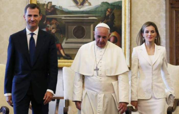 La vestimenta es bastante estricta en materia de protocolo en las visitas al Papa. Los hombres con traje oscuro. Las mujeres deben vestir de negro o en tonos sobrios sin estampados; esta regla se rompe en el caso de reinas de monarquías católicas, como es el caso de la reina Letizia, que puede vestir de blanco. Aquí la explicación.