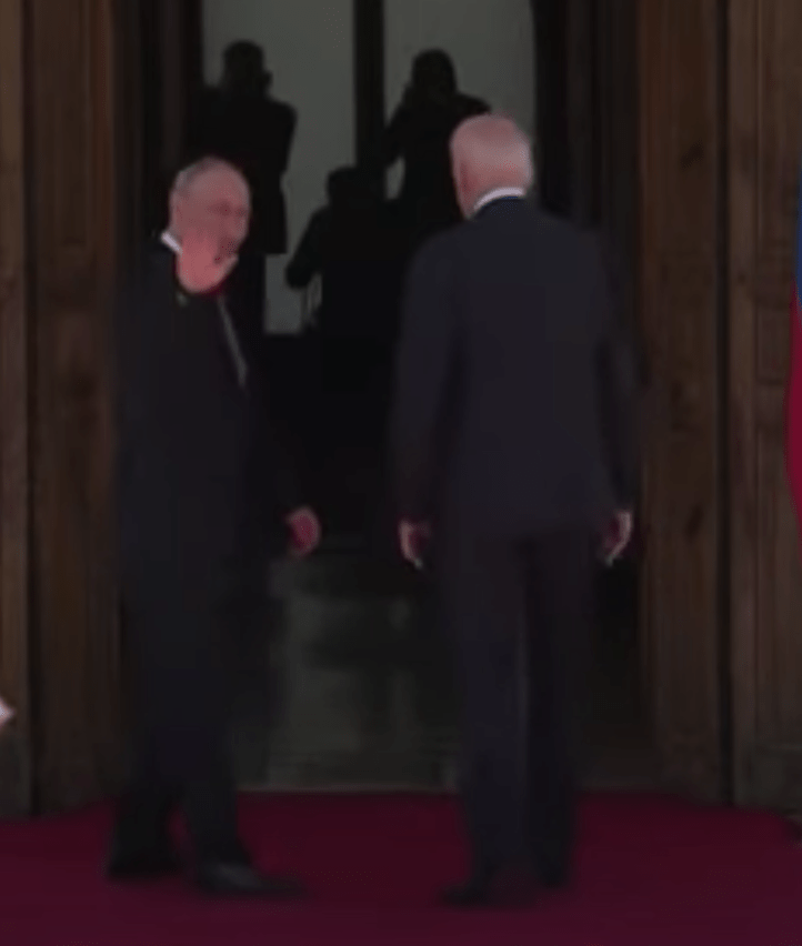Putin se dejaba llevar. Sin prisa alguna, incluso parecía más pendiente de la foto que de Biden. Fíjense en la segunda de las fotos, en la que Biden parece tener una sonrisa muy forzada, como Putin no solo no le mira, lo hace a los fotógrafos, sino lo que me parece más importante, la posición de sus pies está dirigida más hacia quienes recogen el momento con sus cámaras que a Biden, no ocurre lo mismo en este último, que sí los dirige hacia Putin. Nunca olvidemos que los pies son una señal interesante de hacia dónde se quiere dirigir el cerebro.