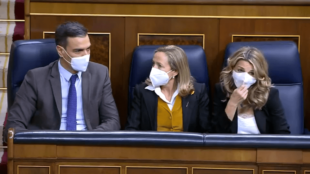 Ahora quiero que nos fijemos en un detalle de la imagen: Sánchez parece explicar algo a sus compañeras que acapara toda la atención de Calviño y provoca la risa de Díaz. ¿Qué es? Aquí puede haber múltiples respuestas, dejo que tú también imagines sus palabras.