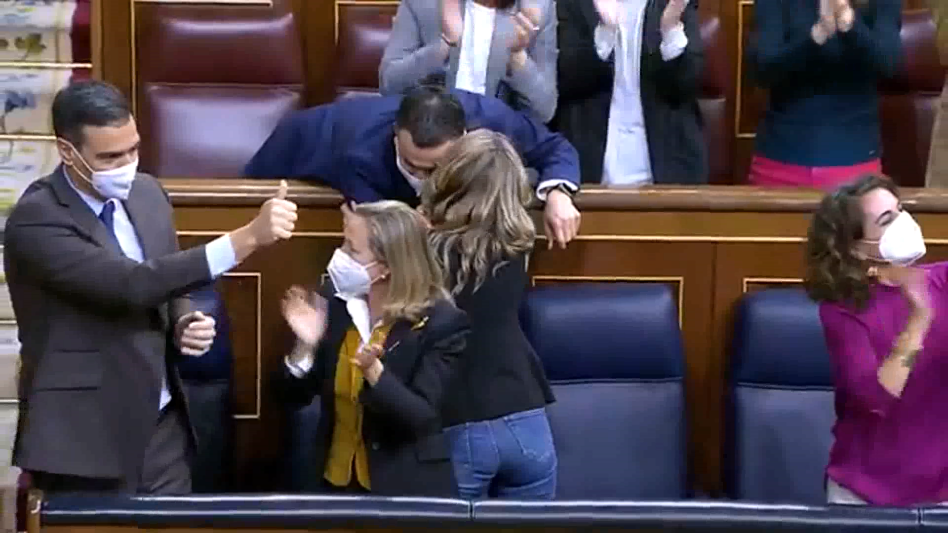 Bien, pues parece que Sánchez no se equivocaba. Todo ha cambiado en cuestión de segundos. Ahora la votación es a su favor y su Real Decreto es aprobado.