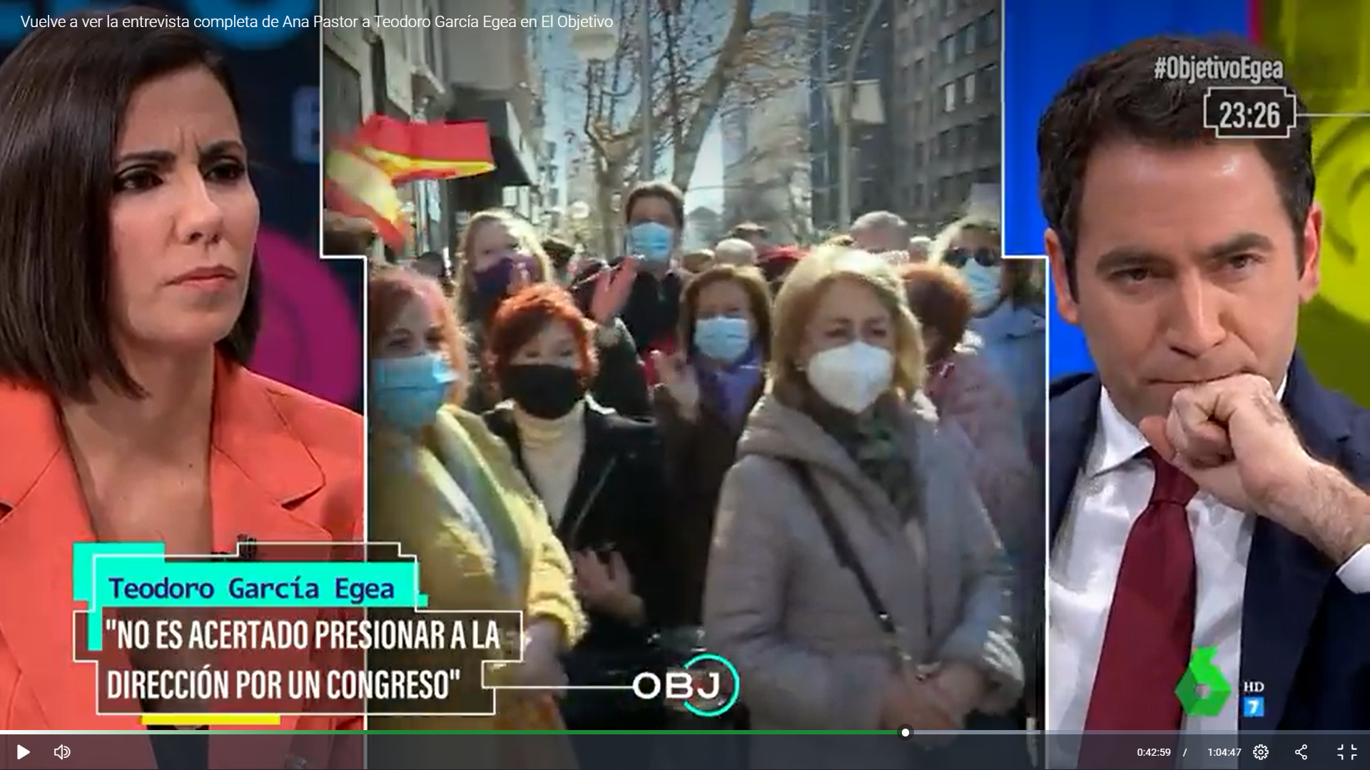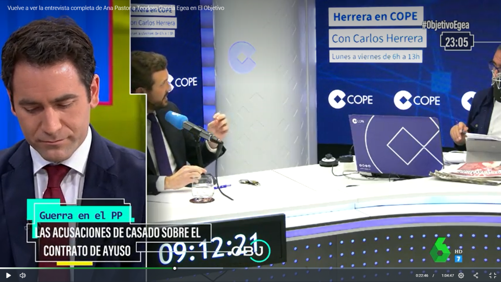 En el programa “EL OBJETIVO” Canal La Sexta de Tv la periodista Ana Pastor ha hecho una interesante entrevista a Teodoro García Egea, quien acaba de dimitir de Secretario General del Partido Popular.