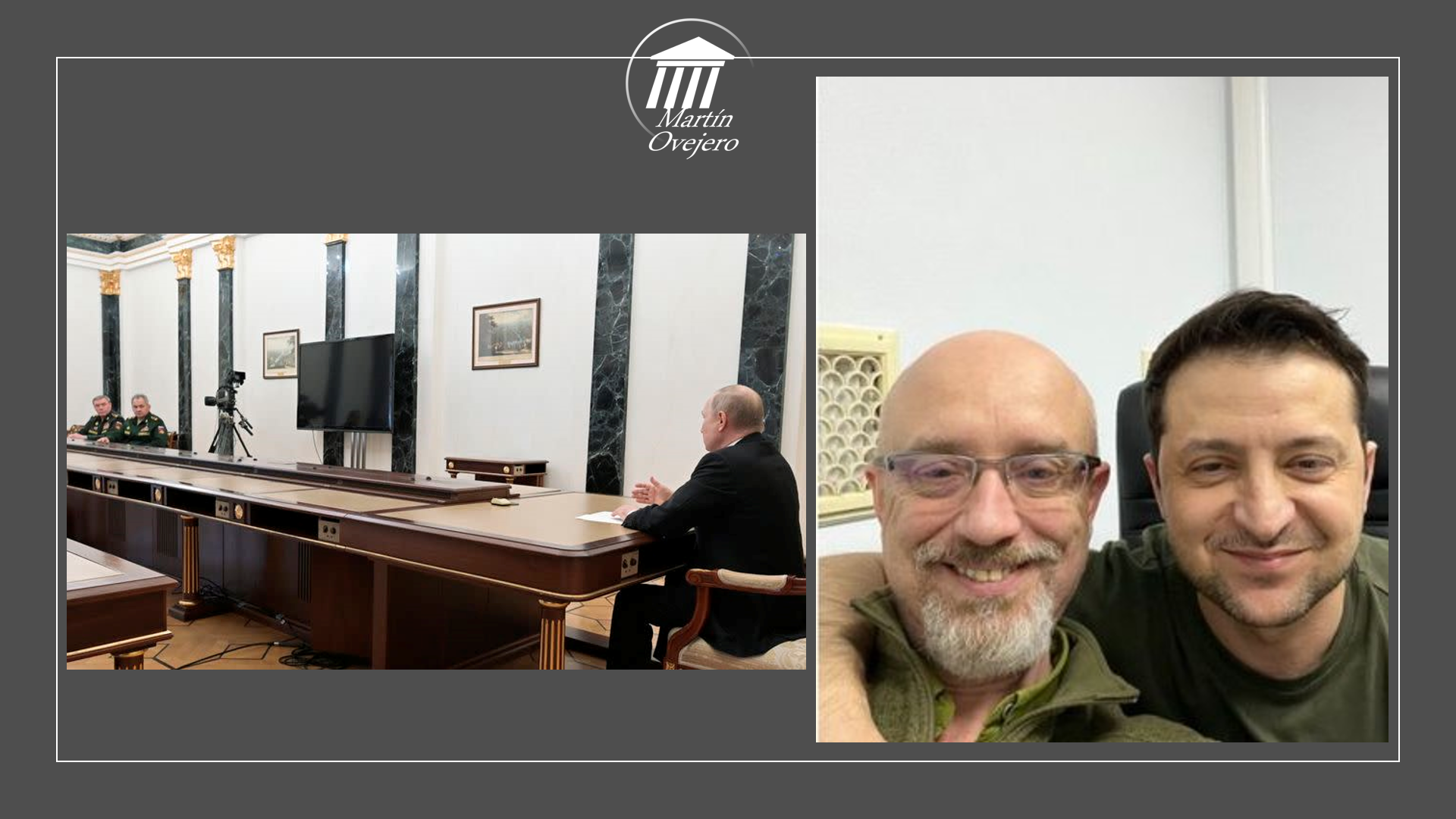 ZELENSKI: Todo lo contrario, manda un mensaje de trabajo en equipo, de unidad e incluso amistad por encima del conflicto al verle hasta cogido por el hombro de su ministro de Defensa. Nos dice que no está solo en su defensa de Ucrania. Es como si contraponemos la imagen de la batalla de un solo hombre contra la que libra todo un país unido.