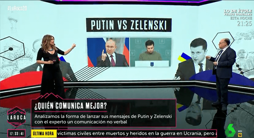 ¿QUIÉN COMUNICA MEJOR: PUTIN O ZELENSKI? 7 marzo, 2022 José Luis Martín Ovejero Colaboración Televisión, Destacados, Expresión facial, Gestualidad, Oculesia (la mirada), Oratoria, Posición corporal, Proxémica (la distancia) Deja un comentario Te invito a ver mi análisis en colaboración para el programa LA ROCA en el canal LA SEXTA: VER ANÁLISIS Comparte esto: Haz clic para enviar un enlace por correo electrónico a un amigo (Se abre en una ventana nueva) Correo electrónico Haz clic para imprimir (Se abre en una ventana nueva) Imprimir Tweet Haz clic para compartir en WhatsApp (Se abre en una ventana nueva) WhatsApp MásMe gusta Cargando...