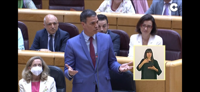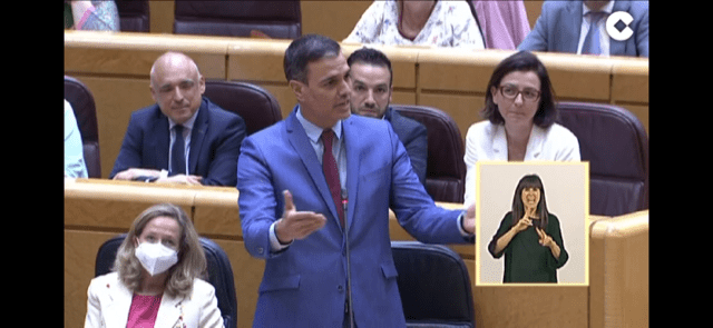 Sánchez ha tenido una comunicación menos agresiva que la que he analizado muchas veces contra Casado, también ha estado en momentos incómodo, algo apreciable por ese gesto tan característico suyo de atarse de manos en esos momentos.