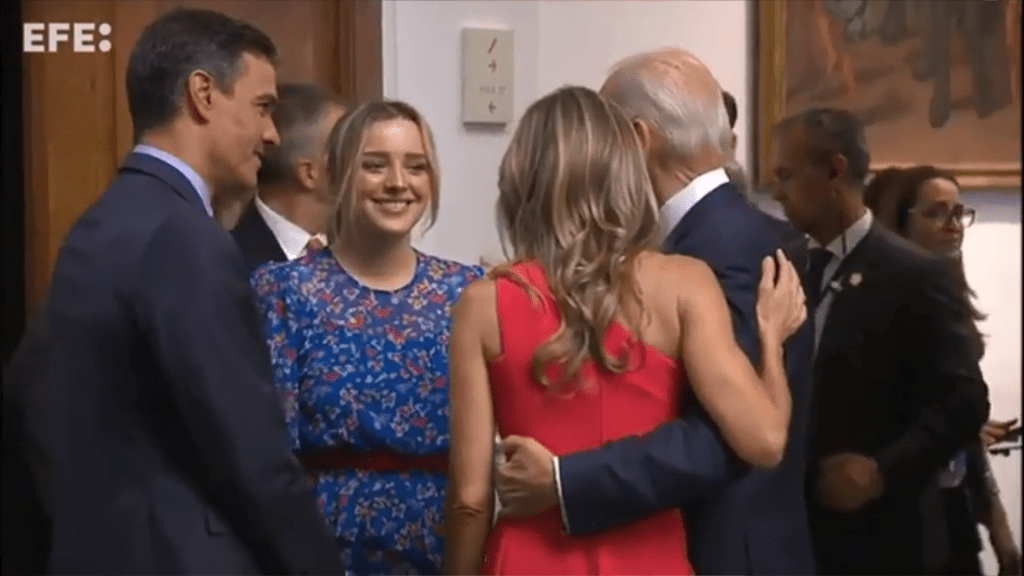 Cuando vuelva a EEUU y le pregunten por Pedro Sánchez, me imagino a Biden diciendo… “Sánchez, ¿quién es Sánchez? Ah sí, el marido de la mujer tan simpática de rojo.” Es una brooooomaaa.