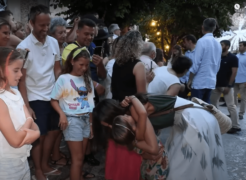 - También ha tenido alguna muestra de afecto, como la que ha hecho a una niña que esperaba su paso, que me ha parecido «explosiva». Vamos, que le ha dejado sin respiración (es broma).