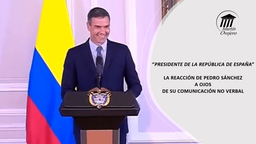 Pedro Sánchez iba a comenzar una comparecencia junto al Presidente de Colombia, cuando quien le anuncia le califica como: «Presidente de la República del Gobierno de España».