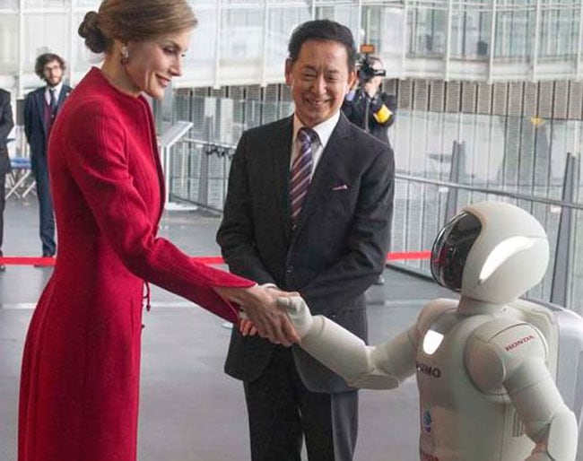 Y lo hace así de bien, incluso, cuando se la estrecha a un robot. No te pierdas la foto.