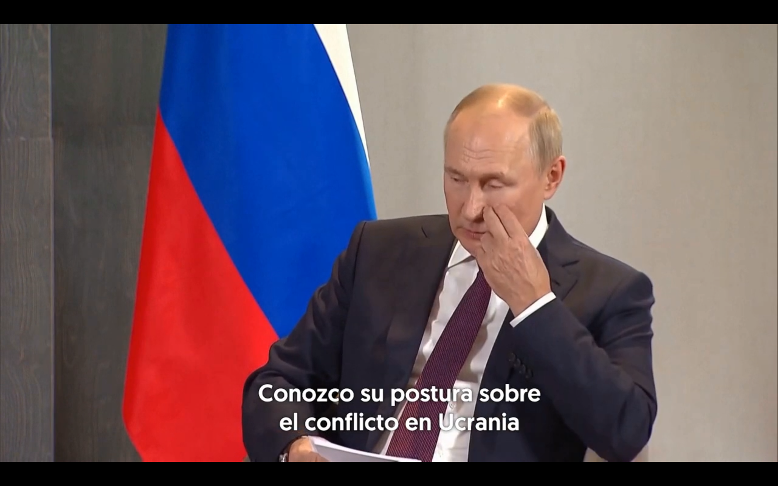 37 segundos y he obtenido 7 señales (algunas se repiten) en el rostro de Putin que reflejan mucho estrés e incomodidad: