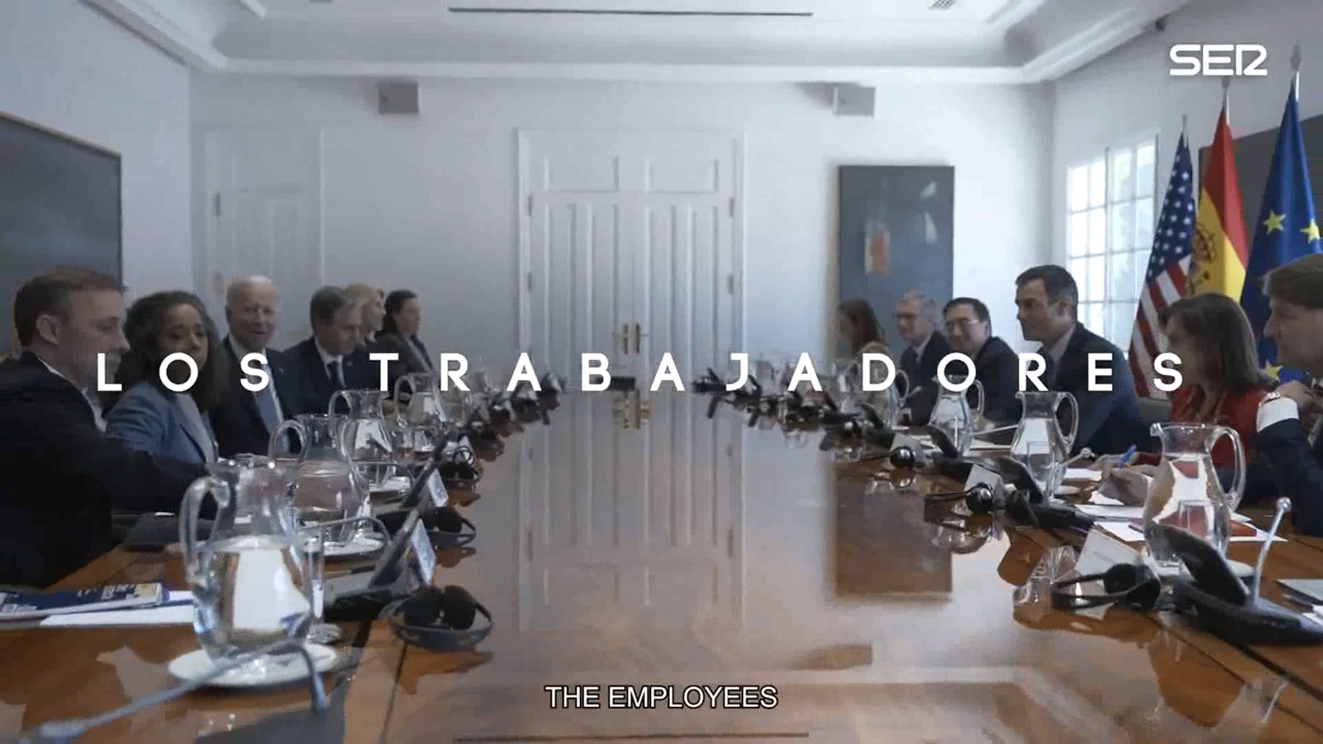 Reuniones con un rótulo donde podemos leer «LOS TRABAJADORES», vamos, más claro no se puede decir.