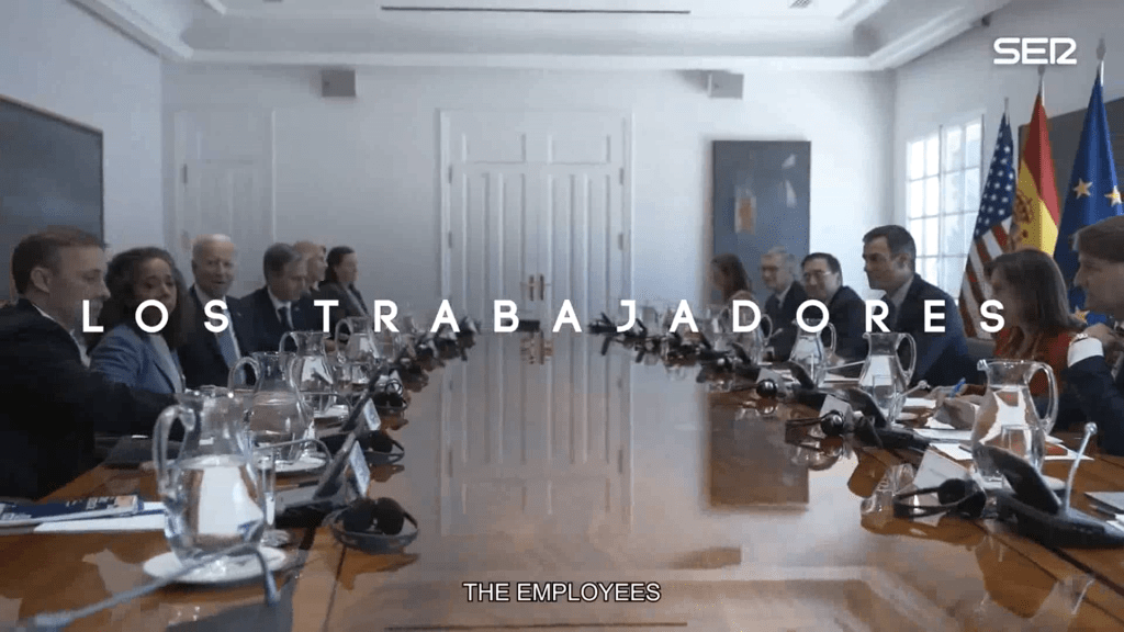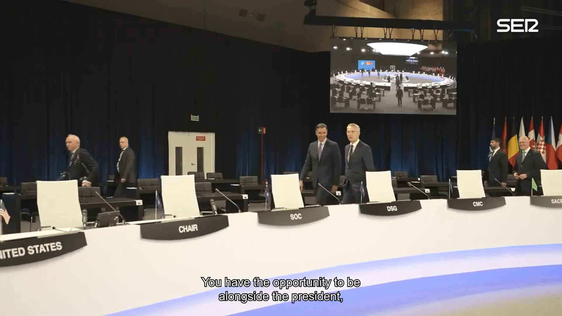 Se eligen dos líderes mundiales de mucho peso que están junto a Pedro Sánchez transmitiendo cercanía y confianza: Joe Biden (Presidente de los EEUU) y Jens Stoltenberg (Secretario General de la OTAN) y en varias ocasiones (en 2 minutos) para que no parezcan meras coincidencias.