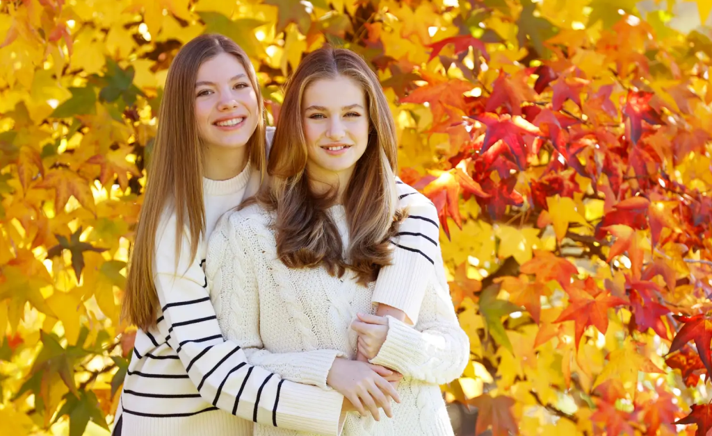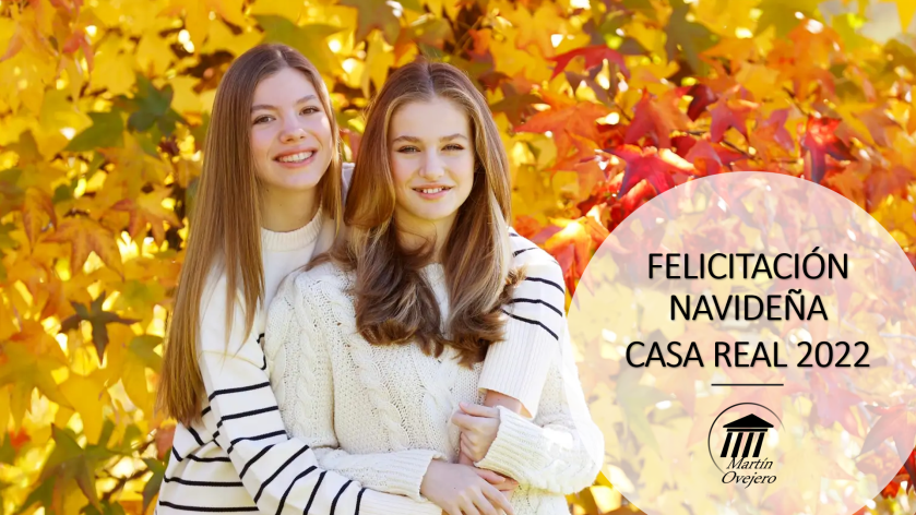 PRESENTES Y AUSENTES: Se ha querido dar todo el protagonismo a la princesa Leonor y a la infanta Sofía. Los reyes Don Felipe y Doña Letizia no han querido aparecer. Me ha parecido un divertido juego: felicitación desde la monarquía, sin la monarquía actual, pero sí con la monarquía futura.