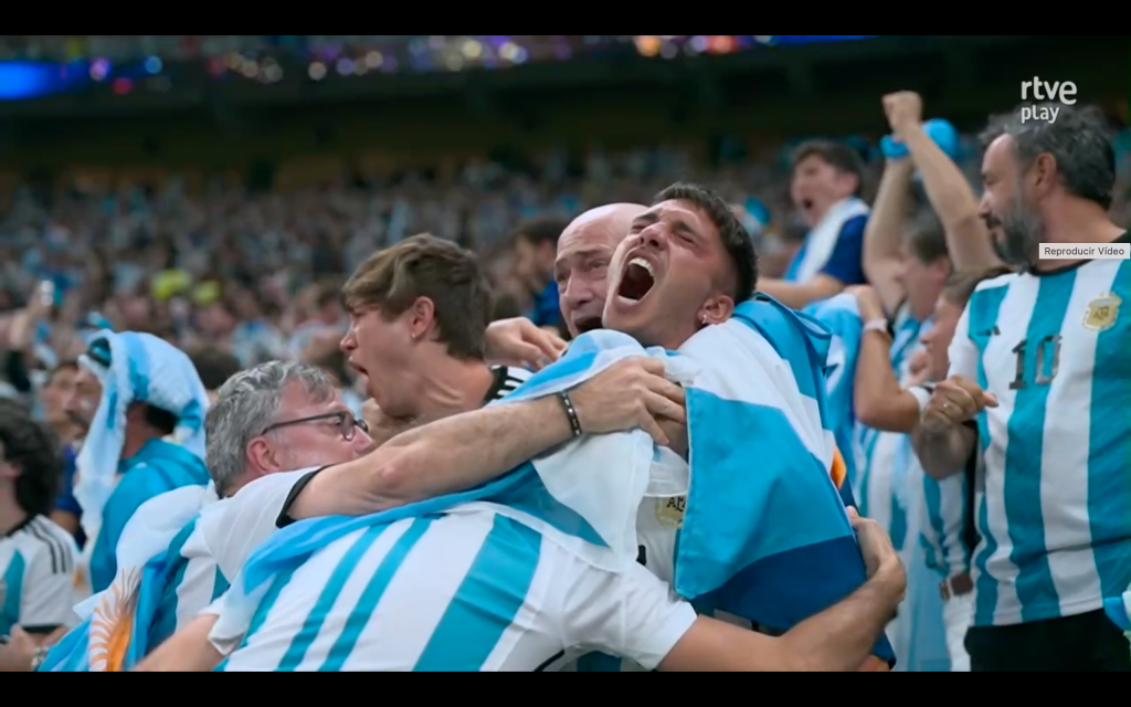 EL PÚBLICO NO JUEGA PERO SÍ VIVE LA VICTORIA COMO SI JUAGARA: y como muestra esta imagen entre otras muchas que podríamos elegir en millones de hogares argentinos.