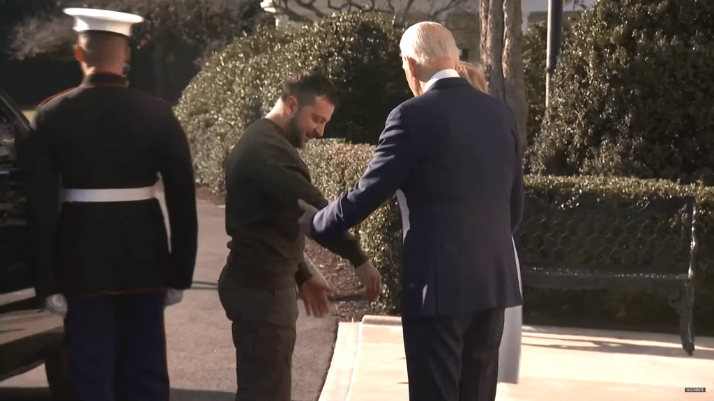 BIDEN MUY CERCANO Y CARIÑOSO: Contacto y más contacto de Biden a Zelenski, desde el recibimiento hasta en las posteriores apariciones juntas de ambos. Manos cogidas, mano en la espalda o en el hombro. Un gesto que también indica superioridad de quien lo hace respecto a quien lo recibe.