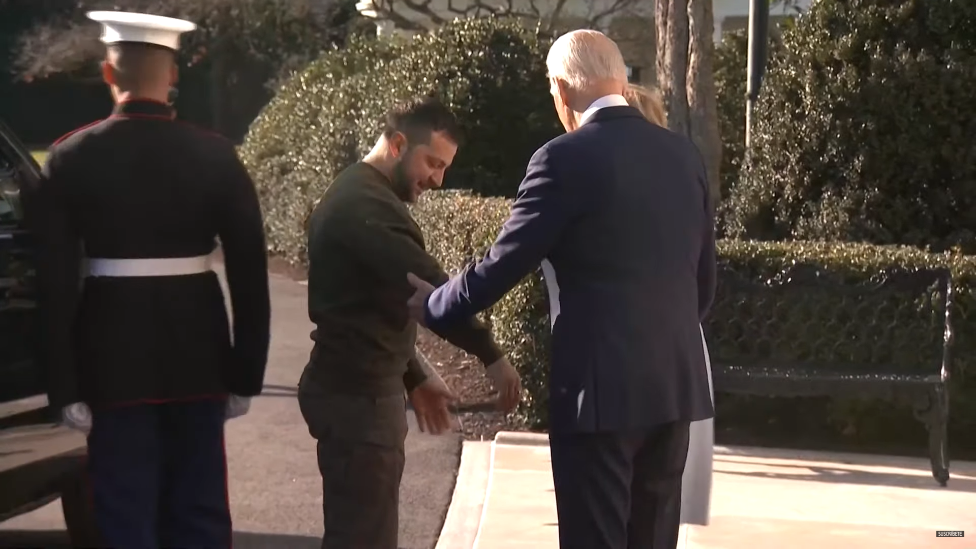 BIDEN MUY CERCANO Y CARIÑOSO: Contacto y más contacto de Biden a Zelenski, desde el recibimiento hasta en las posteriores apariciones juntas de ambos. Manos cogidas, mano en la espalda o en el hombro. Un gesto que también indica superioridad de quien lo hace respecto a quien lo recibe.