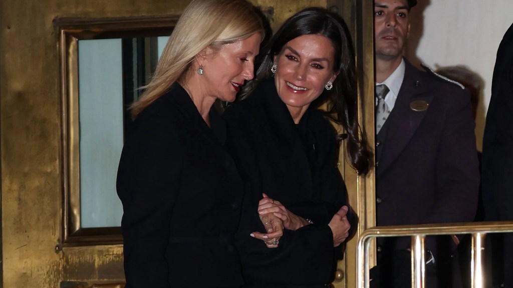 Pero la noche anterior al funeral observamos como ambas salen juntas y, la agraviada, Dª Letizia, transmite cercanía y complicidad con Marie-Chantal: mirada directa + sonrisa + contacto físico. Vamos, lo que en términos científicos se denominaría «buen rollito» 🙂