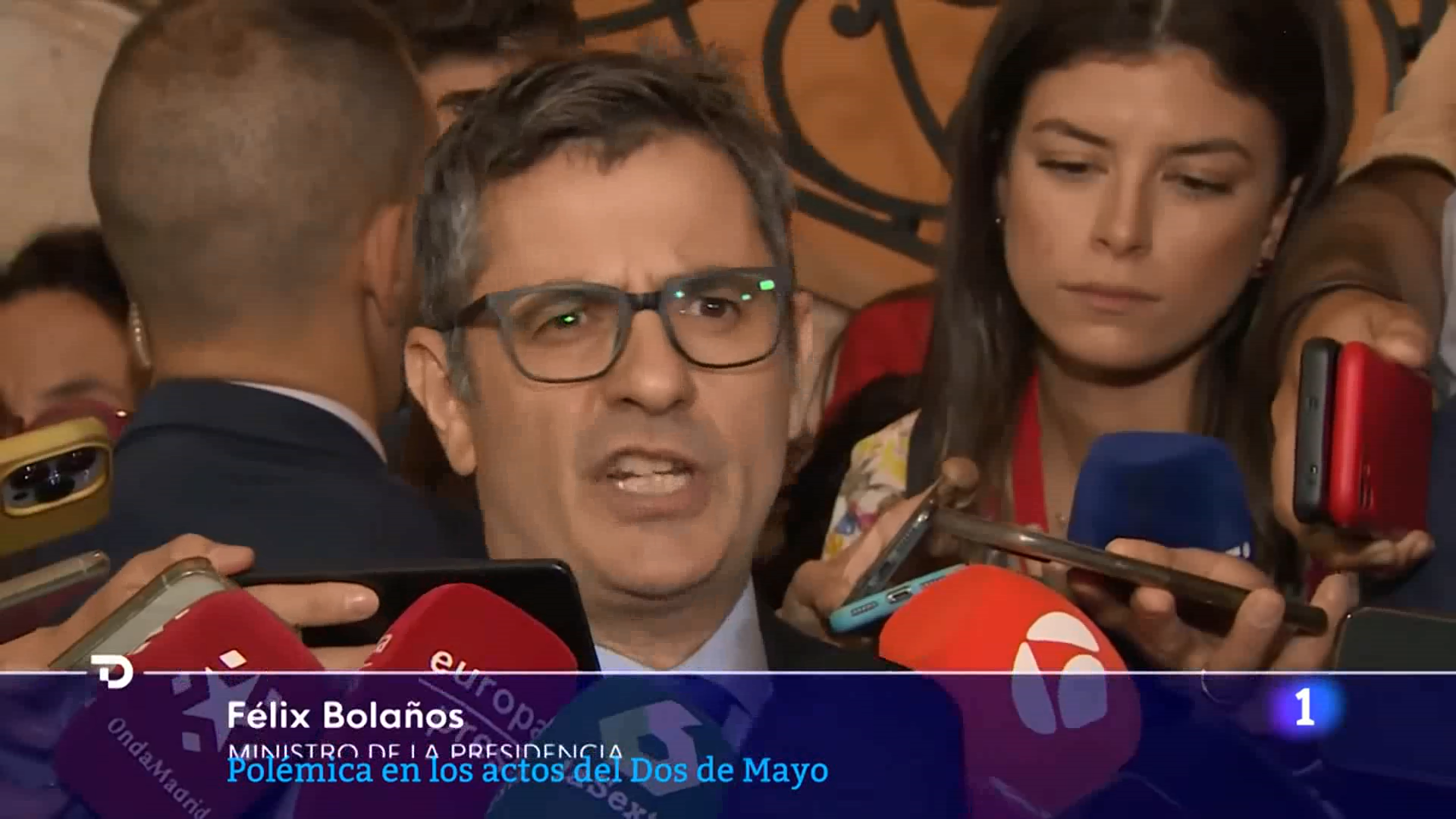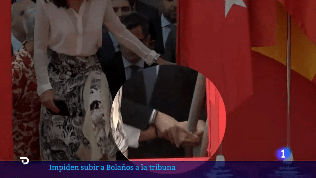 Me ha parecido de una firmeza absoluta cómo la responsable de protocolo de Ayuso ha cortado el paso con su brazo y con su cuerpo a Bolaños para que no pueda acceder a la tribuna.