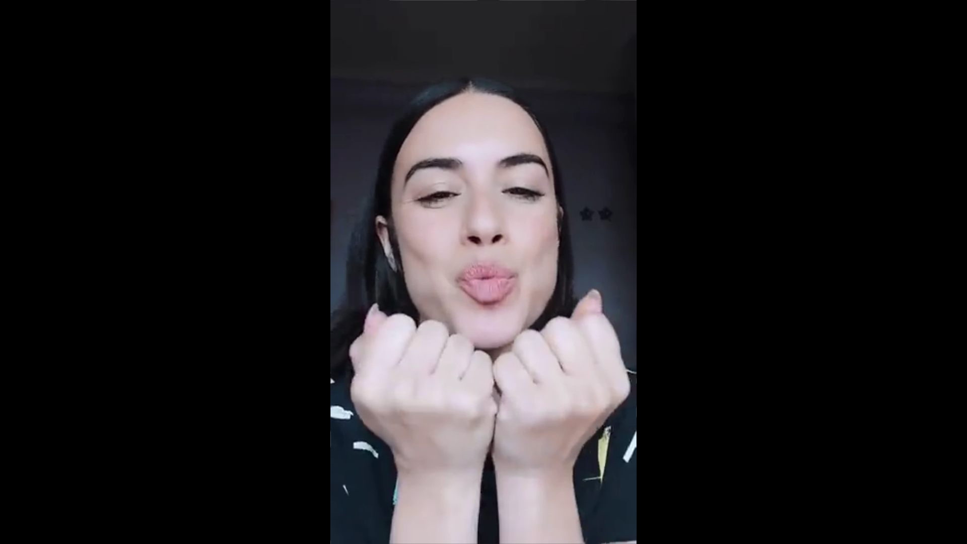 - Y concluye lanzando un beso desde la distancia y, por tanto, totalmente gestual: primero besando con sus labios y, a continuación, lanzándolo con sus manos.