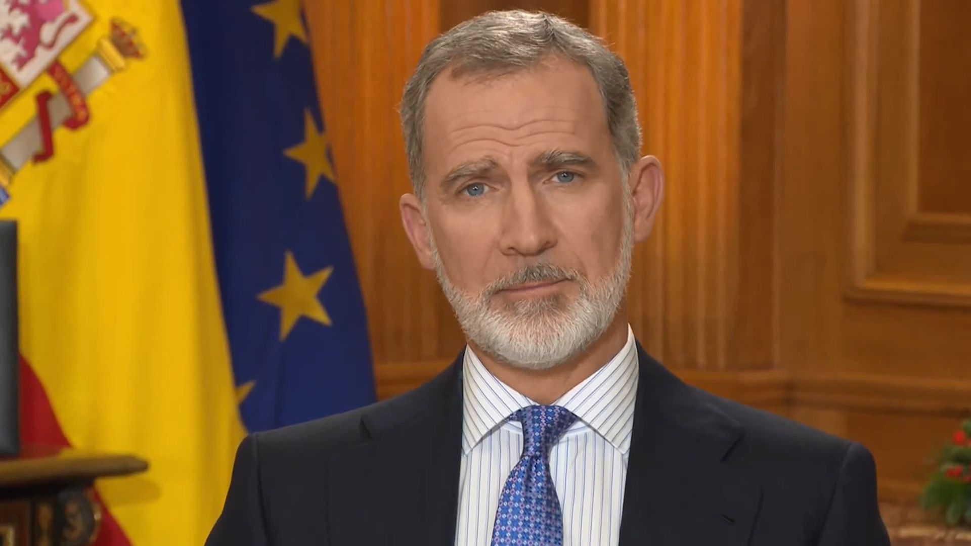 El Rey ha aparecido rodeado de las banderas de España y Europa, el Belén, un árbol de navidad… todo esto muy normal y habitual.