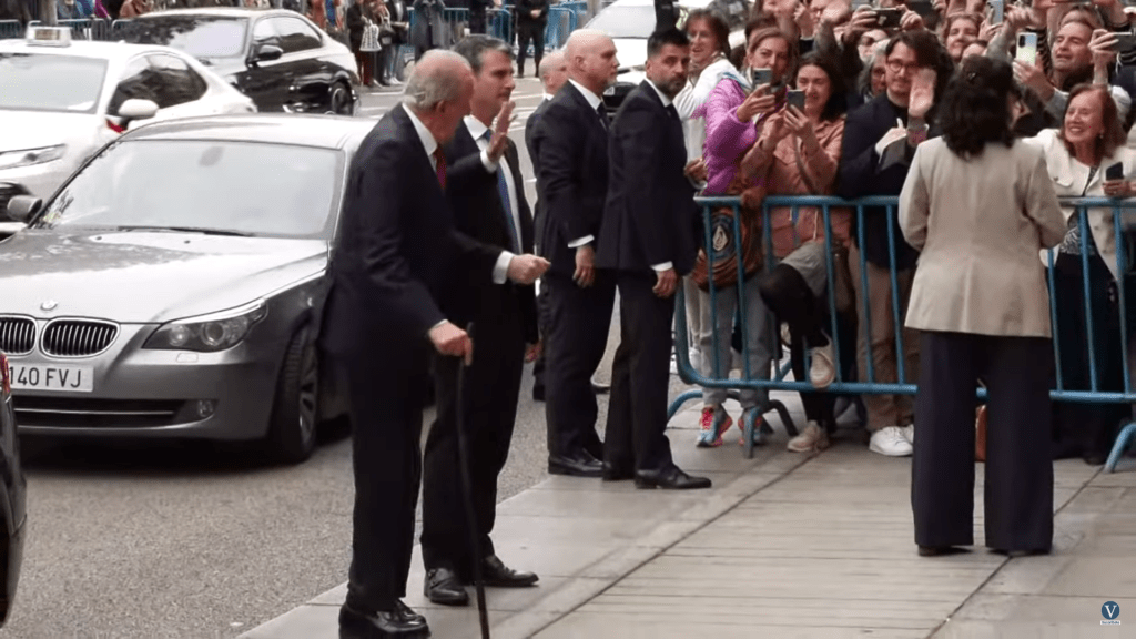 7 – EL REY JUAN CARLOS NO HA SIDO UN INVITADO PASIVO: También saluda a todos los presentes y lo que más me ha llamado la atención es cómo es él quien toma la iniciativa pidiendo a Almeida que se acerque para hacerse una foto juntos. Ni mucho menos ha intentado pasar desapercibido.