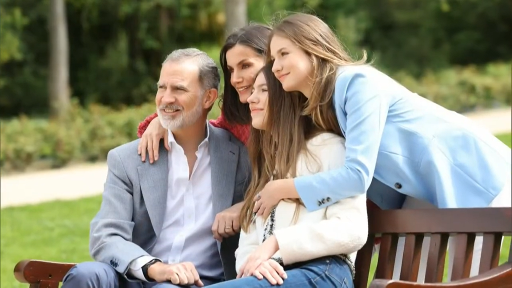 La familia sí aparece en el mensaje navideño tras acabar el discurso. Los cuatro al aire libre, lejos del interior de palacio. Parece claro que quieren mostrarse alegres, unidos y cercanos a los ciudadanos