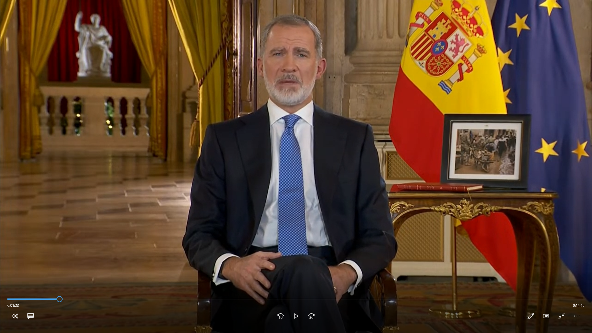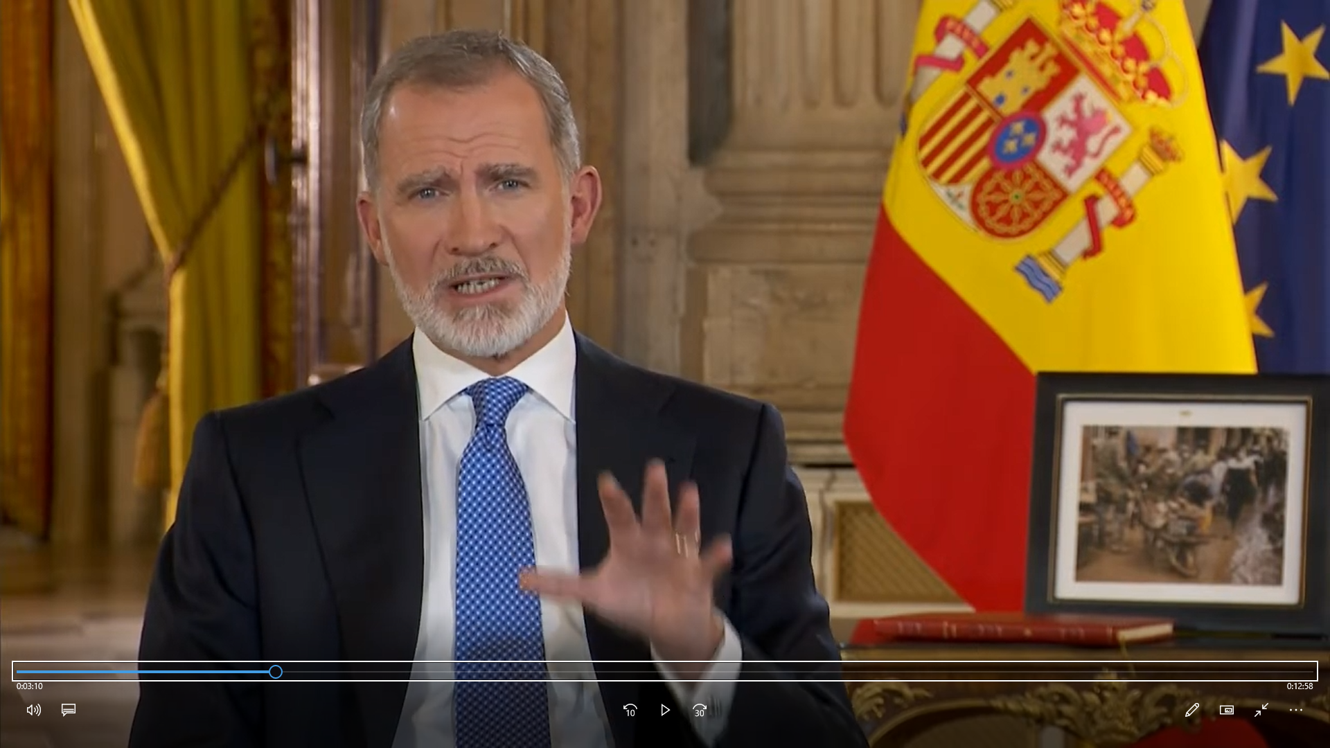 Pensaba antes de ver este discurso que habría alguna foto de la Familia Real o, al menos de la sucesora al trono, la princesa Leonor. Pero no ha sido así, ha querido que la única imagen que le acompañe esté dedicada a la ayuda por la dana.