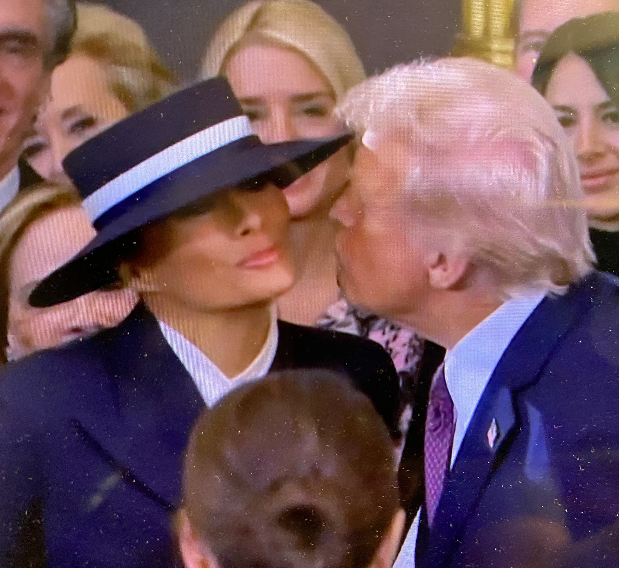 3- MELANIA TRUMP SIEMPRE DEJA DETALLES: La he notado muy tensa, lo que se advertía por su sonrisa tan horizontal y rígida. Además, el sombrero que llevaba le ha puesto en apuros al ya presidente para darle un beso en la cara, hasta el punto de hacer solo el acercamiento sin llegar ni a rozarla.