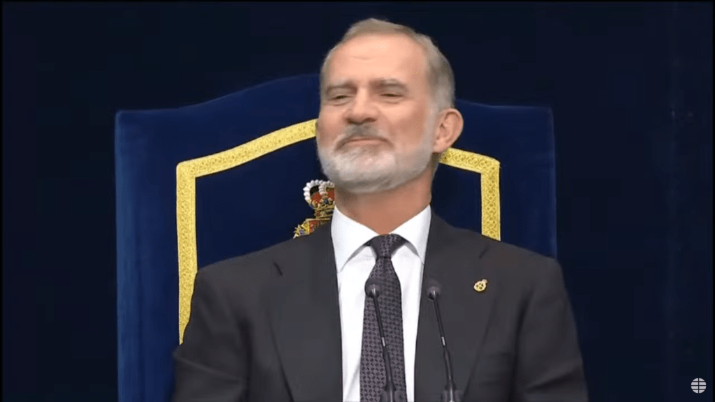 Me ha parecido divertido el momento en el que el rey Felipe anuncia el discurso de su hija y, además de sonreír, levanta su barbilla, eso es puro orgullo paterno.